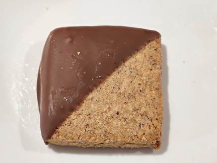 Chocolate Sables: Crumbly butter biscuit. Also available in Vanilla.